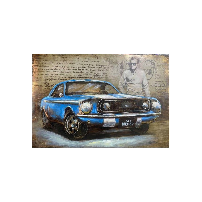 Tableau métal Mustang bleue MCQ 40X60 EN RELIEF